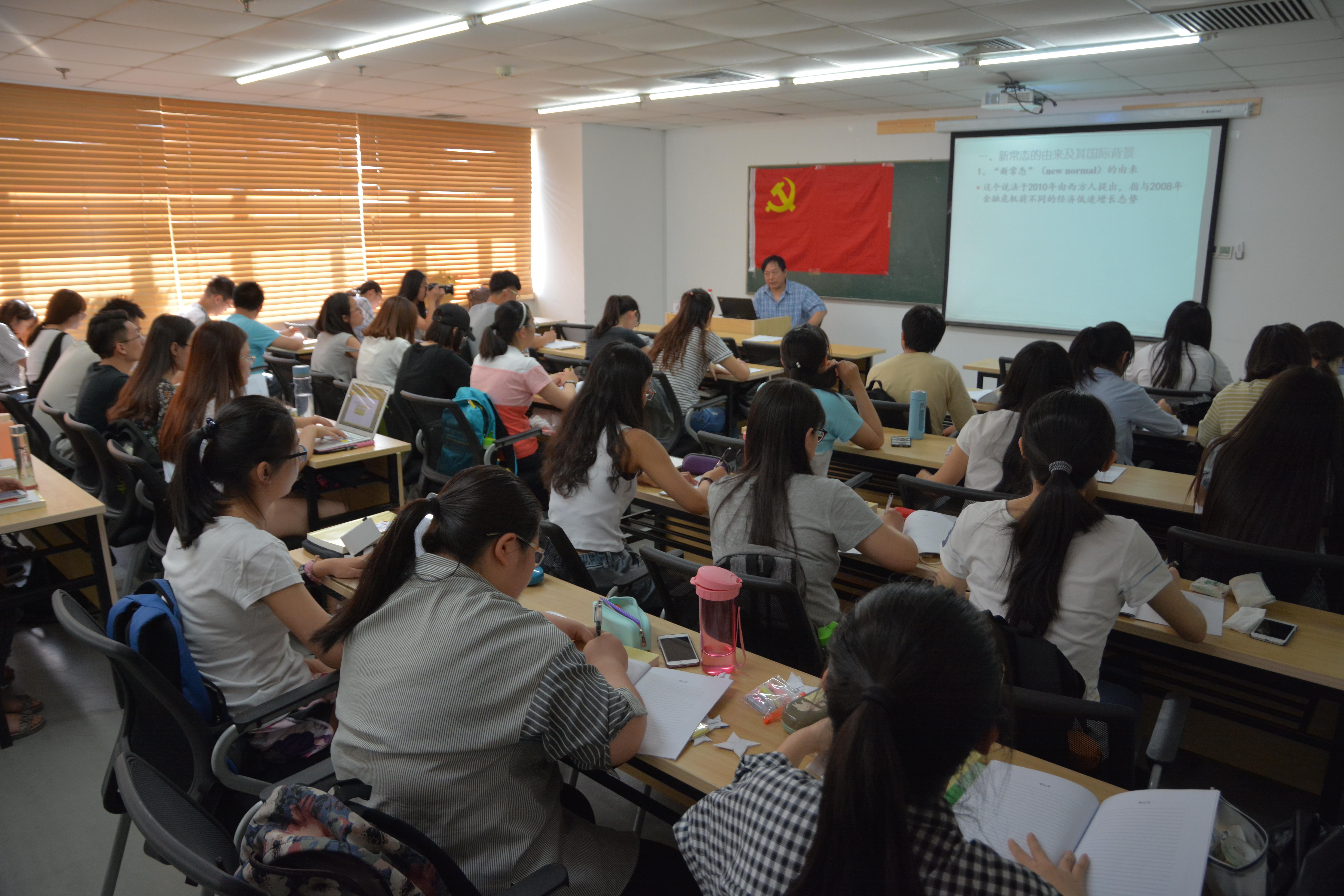 2017年5月17日下午3点半,啪啪啦 二级党校第一场理论讲座在京师大厦9408教室拉开帷幕。本场讲座邀的主讲人是经管学院沈越教授,主题为“新常态与供给侧结构性改革——中国经济发展的回顾与前瞻”。