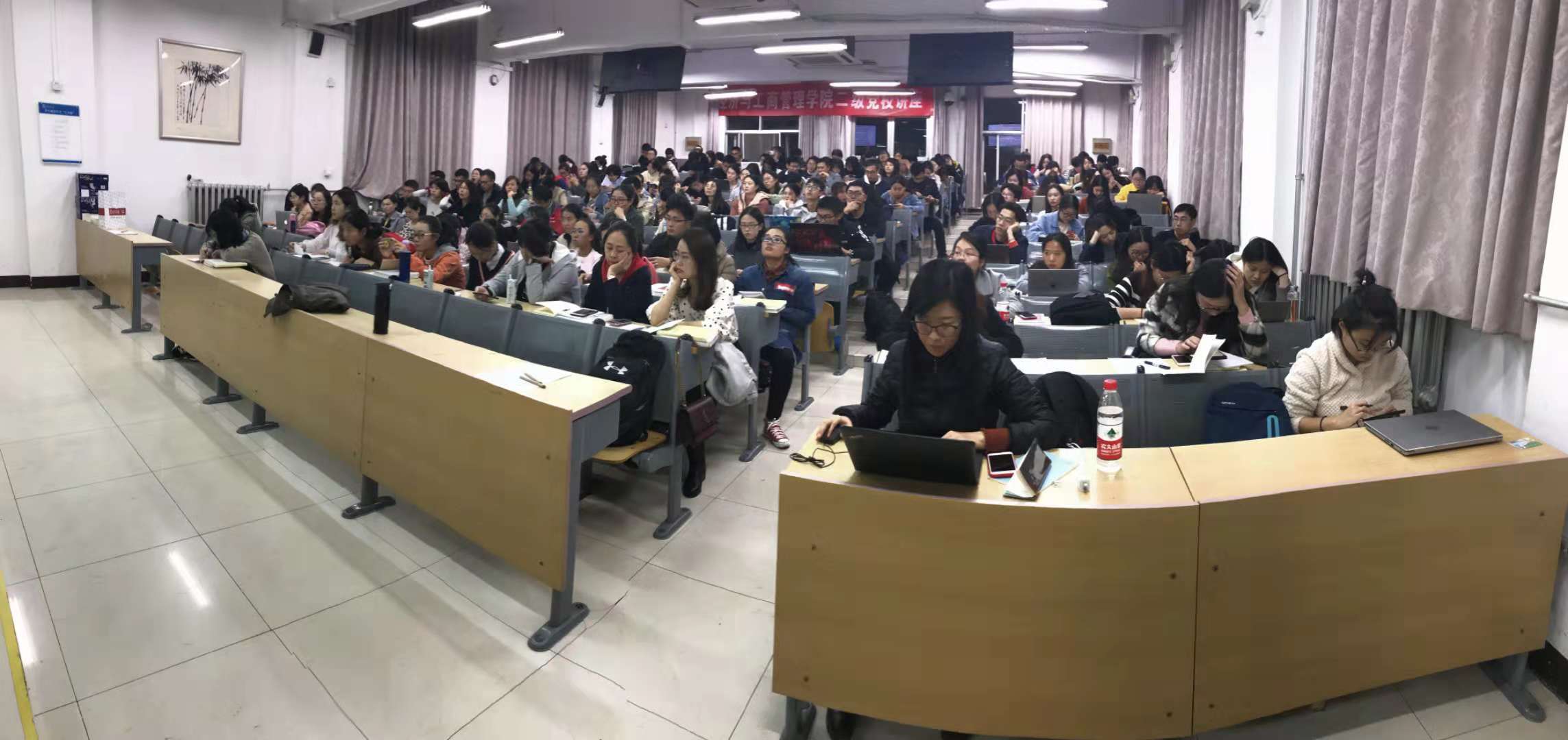 沈教授的讲座生动形象、幽默风趣,赢得在场听众的阵阵掌声。一位六十多岁的教授全程站立讲授两个多小时,这种敬业精神也令在场学生非常感动。整场讲座到场学生超过150人,创啪啪啦 二级党校培训历史新高。