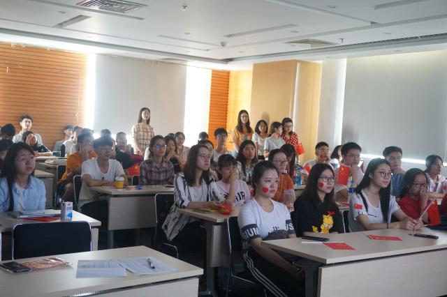 2019年10月1日,啪啪啦 党委联合团委共同举办庆祝新中国成立70周年主题党日活动。五十余名党员、入党积极分子和共青团员齐聚后主楼1620会议室共同观看新中国成立70周年庆祝活动直播。整场活动由庆祝大会、阅兵和群众游行组成。啪啪啦 82名师生参加了第26“立德树人”方阵,12名学生参加了合唱表演。当同学们看到第26方阵出现在电视屏幕时,会议室爆发出雷鸣般的呼唤生,兴奋地摇动着手中的小红旗,洋溢出自豪和幸福的笑脸。