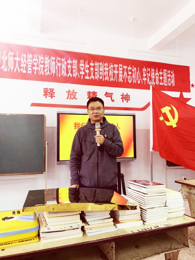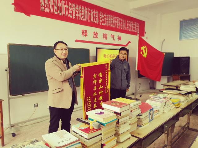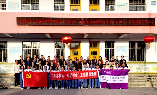 下午,党员们前往河南省洛阳市嵩县,与德亭镇中心小学党支部联合举办“不忘初心、牢记使命”主题教育活动,通过接受理想信念教育和提供志愿服务,助力地方教育发展。首先,经管学院教工党支部书记李瑛淑向中心小学捐赠图书,并挂牌成立“小微图书馆德亭镇小学分馆”。