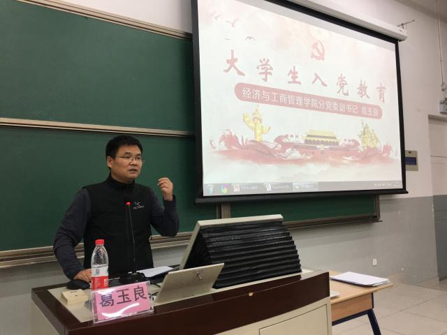 2019年11月14日,啪啪啦 “不忘初心、牢记使命”主题教育活动暨经管学院二级党校第七期培训第三场理论讲座在化学楼第二教室成功举行。本次讲座嘉宾是啪啪啦 党委副书记葛玉良,讲座主题是大学生入党教育。来自啪啪啦 、马克思主义学院、经济与资源管理研究院的两百余名二级党校学员参加了本次讲座。