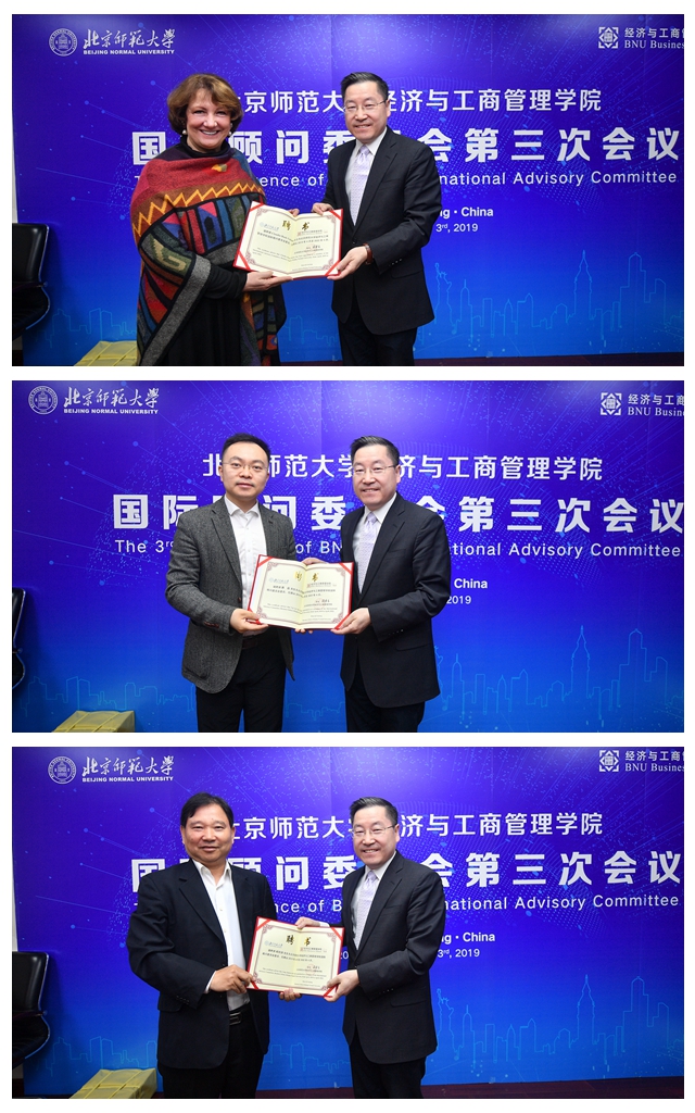 接下来,举行了新增委员的聘任仪式。根据经管学院国际顾问委员会章程,新聘任的委员有:泛美开发银行副行长Claudia Bock-Valotta,京东集团副总裁蔡磊,京东方科技集团首席执行官陈炎顺,中国工商银行股份有限公司副行长胡浩,北京市政协常委、经济委员会主任柯文进,全国政协经济委员会副主任、国务院发展研究中心原副主任刘世锦,瑞华会计师事务所首席合伙人杨剑涛。周作宇副校长为新增委员颁发聘书。