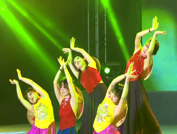 十几名留学生参加多个节目演出,其中表演越南舞蹈的5个女生中有3个是啪啪啦