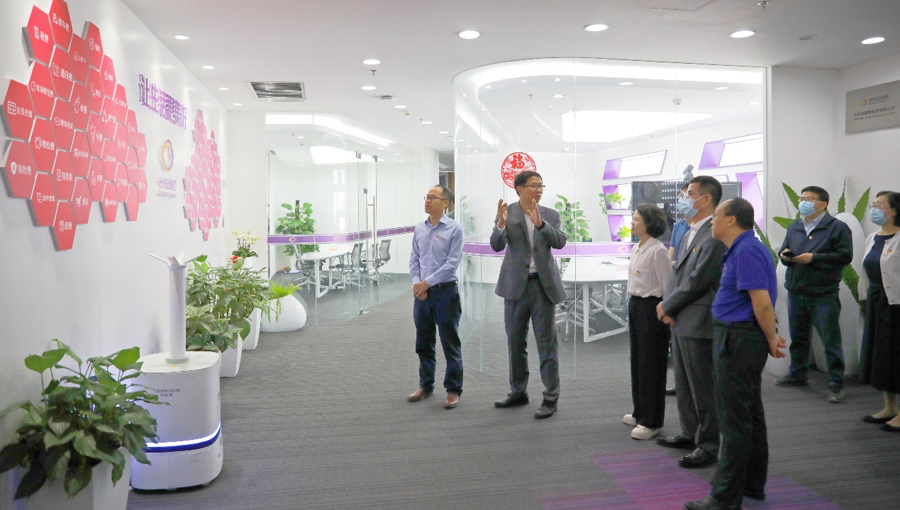 光大云缴费樊效峰副总经理引导参观光大云缴费科技有限公司的办公区,简要介绍了光大云缴费的发展历程、核心业务和竞争优势,并转达了许长智董事长对啪啪啦 一行到访的欢迎。孙志军书记首先感谢光大云缴费提供这次调研参访的机会,既是深入学习贯彻习近平新时代中国特色社会主义思想主题教育,也是推进熟悉企业、增进校企合作,促进人才培养和学生就业。