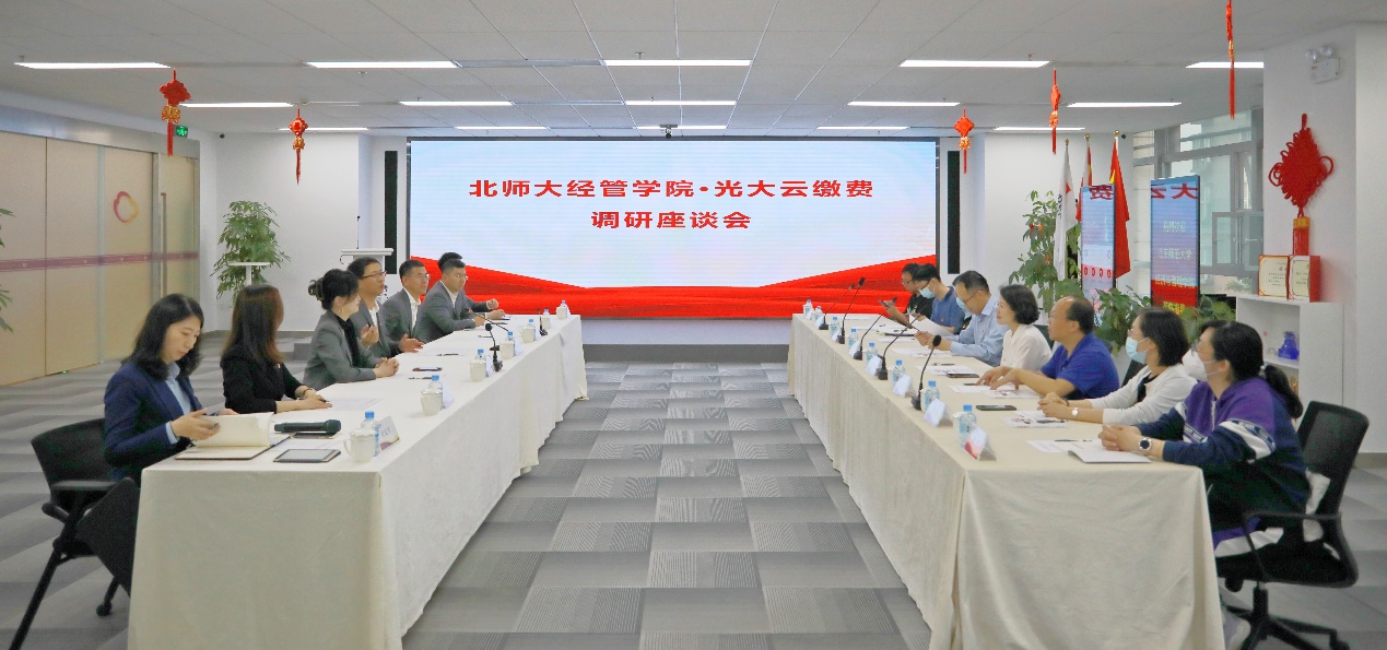 为了进一步了解光大云缴费的业务发展以及未来数字便民服务的发展趋势,光大云缴费科技有限公司资深专家陈红薇讲解云缴费智慧大屏及介绍云缴费业务发展现状,了解到光大云缴费在数字便民缴费方面取得的长足发展和深厚积累,在个人的基础生活缴费、社保云缴费、党务云缴费、教育云缴费和数字政务方面取得了很多特色项目,尤其是独家承担全国校外教育培训资金监管和服务平台,并为多所学校提供智慧校园场景金融服务。樊效峰副总经理进一步补充,光大云缴费未来重点发展政务缴费和企业缴费,充分利用学校研究院等智库优势,挖掘数字资产价值、流量变现等。