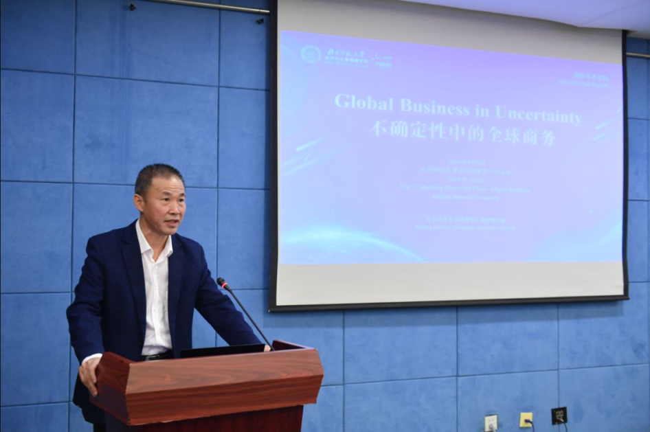 北师大经管学院院长戚聿东首先致辞,他提到,习近平总书记在党的二十大报告中指出,当今世界百年未有之大变局加速演进,新一轮科技革命和产业变革深入发展,国际力量对比深刻调整。这为全球商务领域的理论研究和实践创造了越来越多的机会,中外学者相聚于此交流研讨,就是在不确定性中增加确定的生动体现。