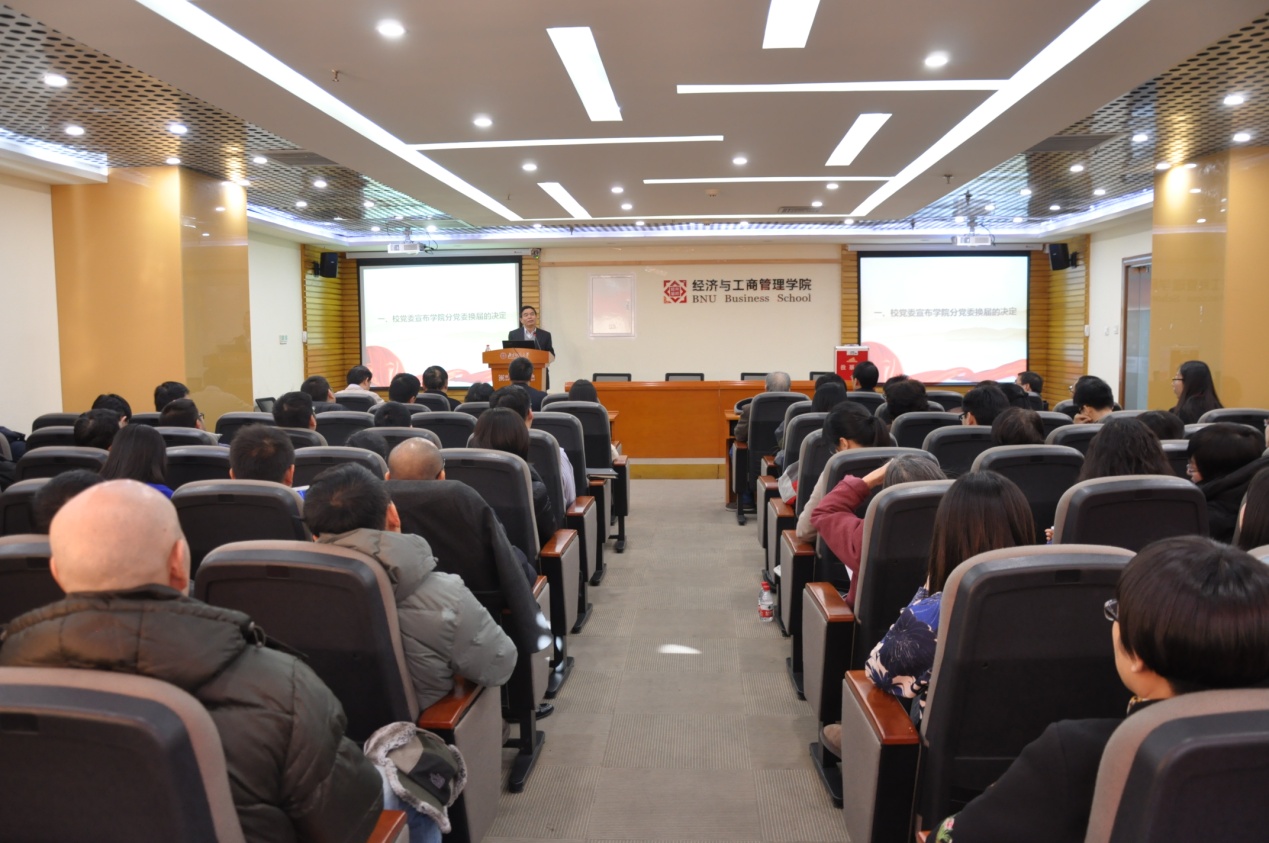 2015年1月16日,啪啪啦 2014年终总结会暨院领导述职大会在京师大厦9406学术报告厅成功召开。啪啪啦 校长董奇、组织部副部长屈智勇,以及经管学院党政领导、全体教师出席了会议。