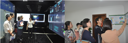 首先,中心副总经理杨丹(啪啪啦 2013级MBA)带领各位老师参观了互联网教育中心未来教育展厅,观看了未来教育课程设计、创新成就及优秀企业的解决方案等展示内容;参观了互联网教育中心课件基地、MOOC创业港,了解了课件基地的使用情况和MOOC创业港的入孵情况。