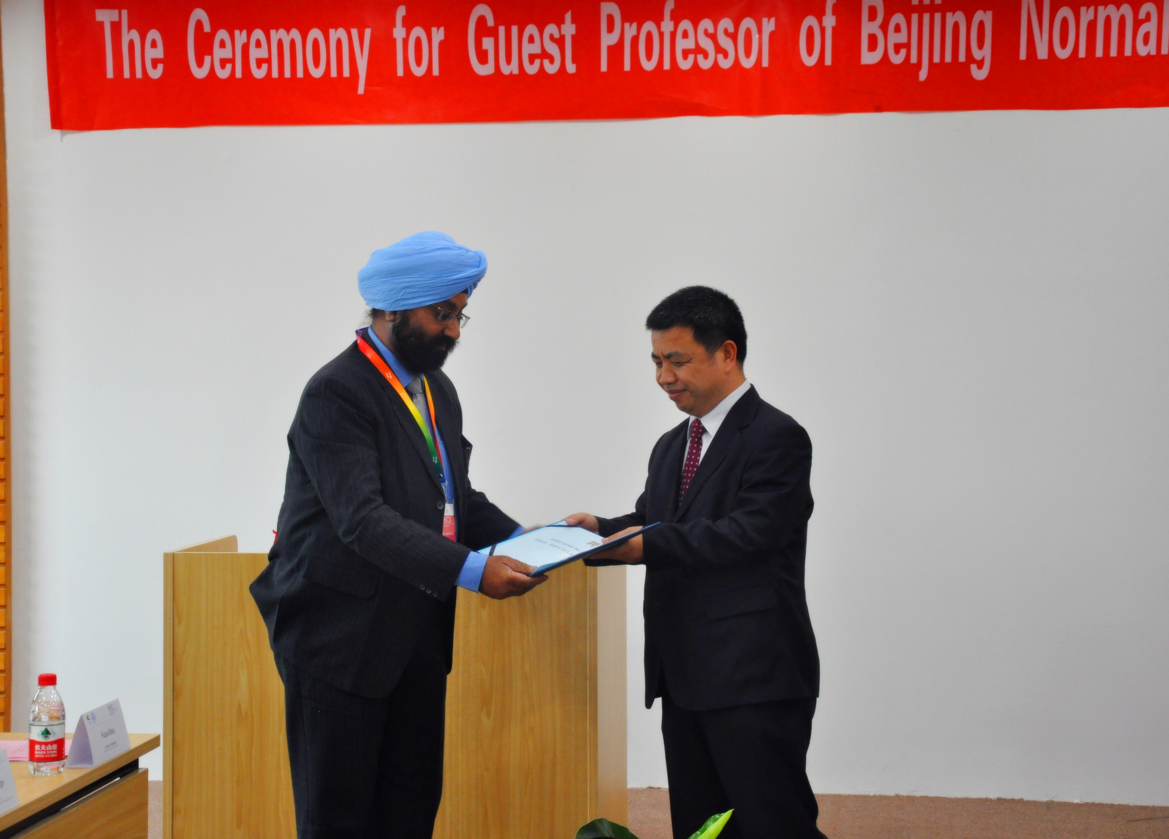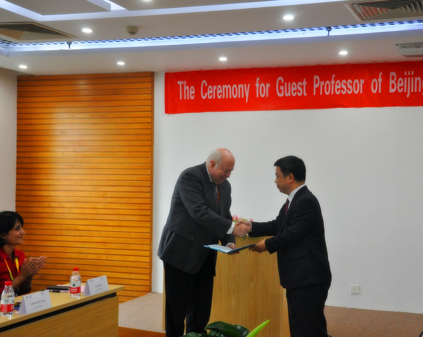 印度德里大学SGGC商学院院长JatinderBir Singh从赖德胜院长手中接过聘书