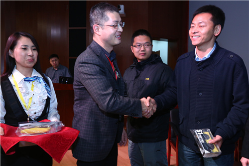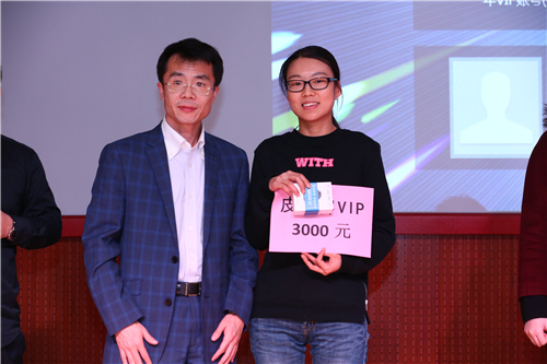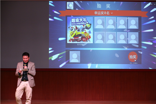 图:MBA中心主任苏凇博士抽出万元大奖,并为两位中奖者额外送上MBA中心的定制礼品