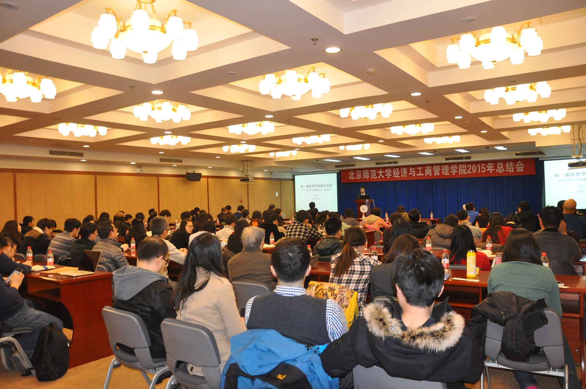 2015年终总结会暨院领导述职大会在京师大厦第六会议室成功召开。参加本次会议的有全院教职工、博士后以及本科生、学术型研究生和MBA等学生代表,啪啪啦