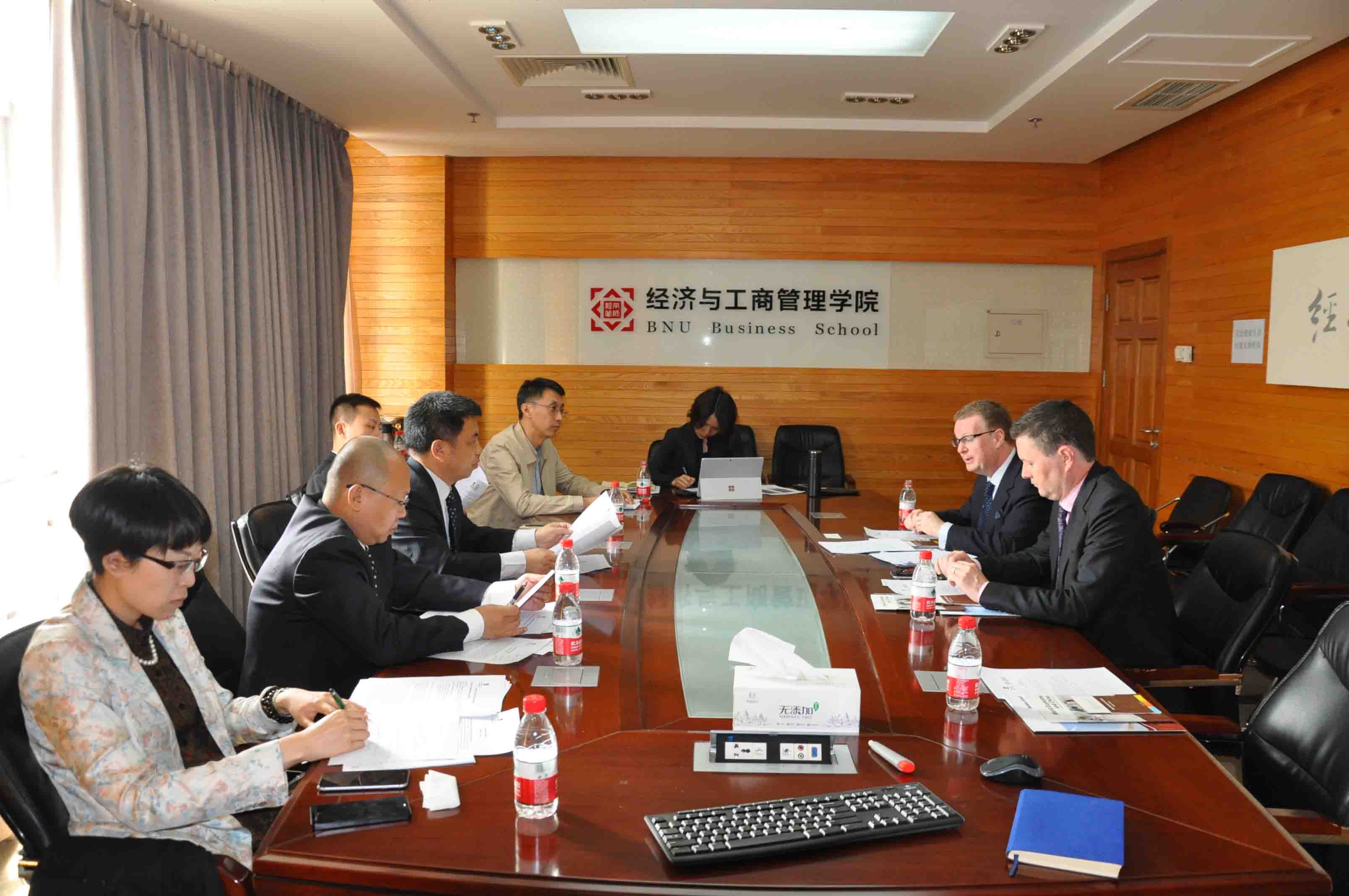 Lloyd校长第一次访问啪啪啦 ,赖院长对他的到访表示欢迎,并请杨老师对学院各方面的情况向来宾做简要的介绍。此次访问是该校自3月份以来的第三次到访,双方此次商谈的重点是在南澳大学共建商务孔子学院事宜,以及进一步落实两校在教学科研等方面的合作,包括学生和教师的交换、本科生双学位项目、学硕和专硕项目的师生交流、科研合作、合办学术会议,以及合办创新创业研究中心等。