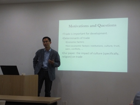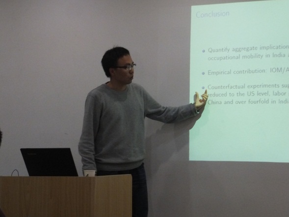 对外经济贸易大学刘青教授报告的题目为“eligion and Trade: Evidence from Historical Protestant Activities in China”,认为宗教是贸易发展的一个很大驱动因素,分析了在控制宗教对经济增长的影响情况下,新教在中国的传播是怎么影响出口的。中央财经大学纪珽博士报告的题目为“Aggregate Implications of Occupational Inheritance in China and India”,主要探讨的是职业继承,用数理模型和数值模拟的方法对中国和印度的职业代际传承做了分析,认为我国过去三十年在打破职业代际传承方面做得很好,释放了人力资本的潜力,提升了经济增长的活力。社科院王向楠博士报告的题目为“市场集中度对价格的影响----对中国财产保险市场的研究”,认为目前我国的财产保险的价格较高,集中度也很高。企业数量与欧洲的国家差不多,但总体上与欧美国家相比还是较低。在保费方面,由于大陆保险费用高很多人去香港买保险,因为香港保险的价格更低,服务更好。对外经济贸易大学陈昊博士的报告题目为“房价上涨与学历-收入误配之谜:稳定偏好的无奈”。认为高房价毁灭了年轻一代,使得高学历年轻人无法选择高收入但收入波动较大的工作,而只能更偏好相对稳定的工作。