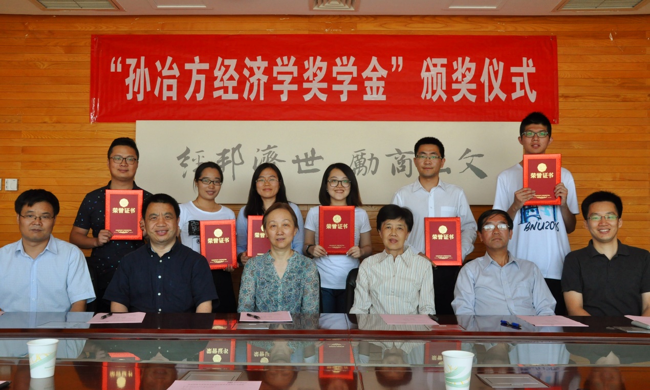 在颁奖仪式上,赖德胜院长、薛小和女士、王迎新研究员、李实教授、葛玉良老师、魏浩教授首先向获奖学生颁发了获奖证书,并合影留念。