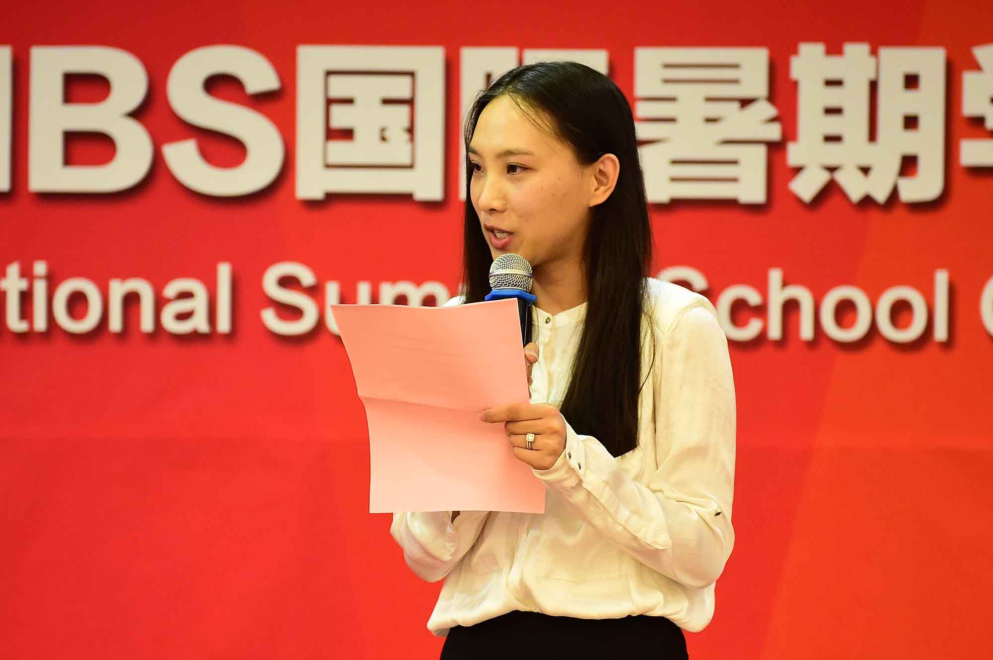 接下来,啪啪啦 张瑞新老师作为本次暑期学校的任课教师代表发言,她概述了新兴市场经济体和中国的经济发展形势,指出参加本次活动是学员们见证、理解当前中国经济正在发生着什么的最佳方式,她期待在未来两周能和同学们有更多的互动和交流。