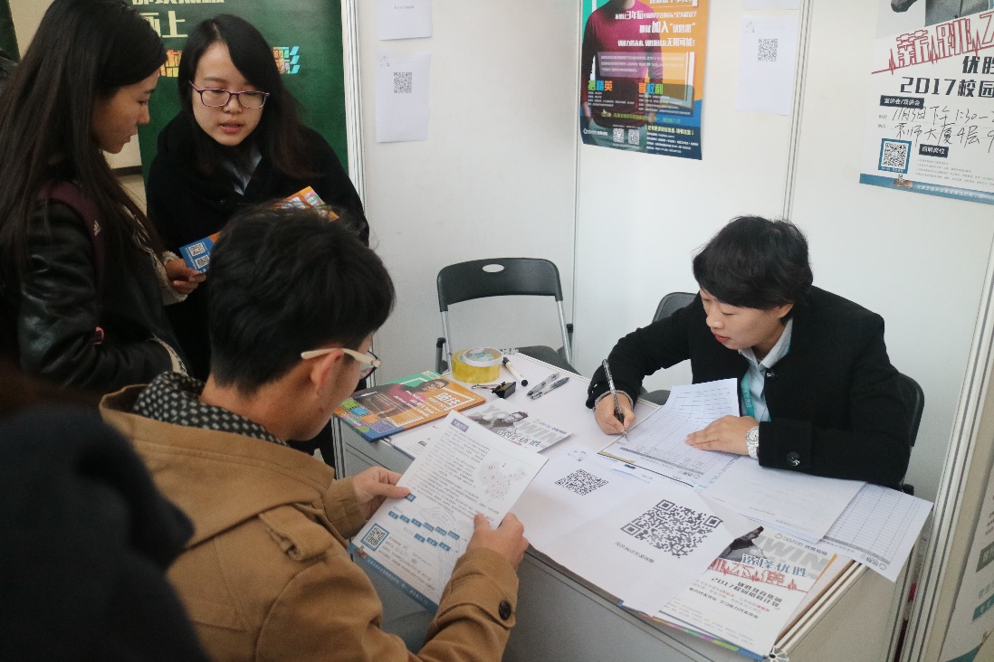 邱季端体育馆进行。本次专场招聘会主要针对2017届应届经管类和艺术传媒类毕业生,将企业招聘请进校园,搭建起用人单位和大学生交流的平台,为2017届毕业生提供就业岗位、为在校生提供实习机会。中国银河证券、中国人寿等30余家企业来到招聘会现场接受应届毕业生们的咨询并接受简历。
