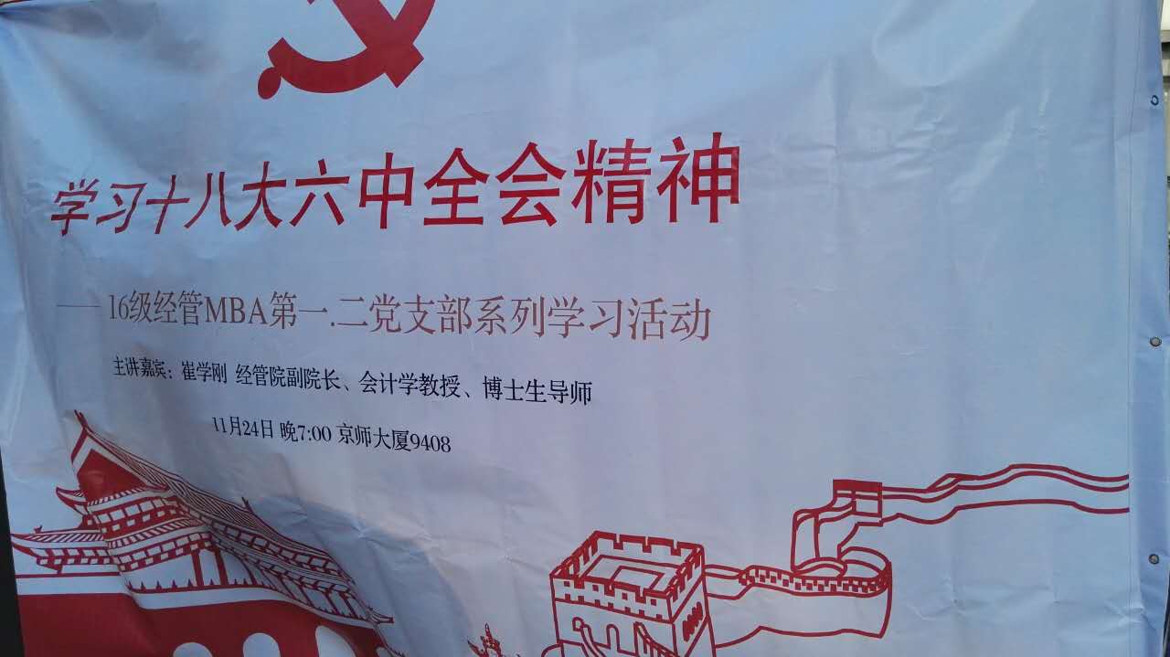 MBA2016级第一、第二党支部共同举办的以“学习十八大六中全会精神”为主题的党员教育活动在京师大厦9408室进行。啪啪啦