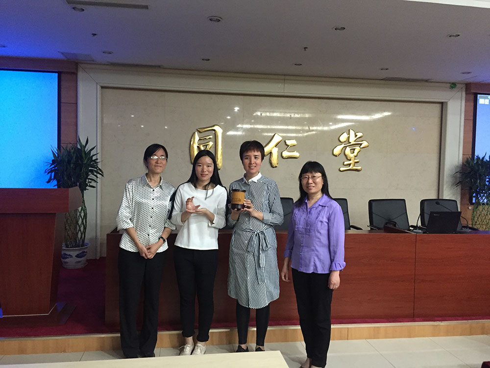 最后,李欲晓老师表示此行对学院管理会计教学活动有很大的帮助,对同仁堂科技发展有限公司培训部给予的热情招待表示了感谢,并希望以后进一步加强联系与合作。吴沁红老师、李欲晓老师和张海燕老师一同代表啪啪啦 向企业对接人赠予了带有北师大标志和经管学院标志的礼品,活动圆满结束。