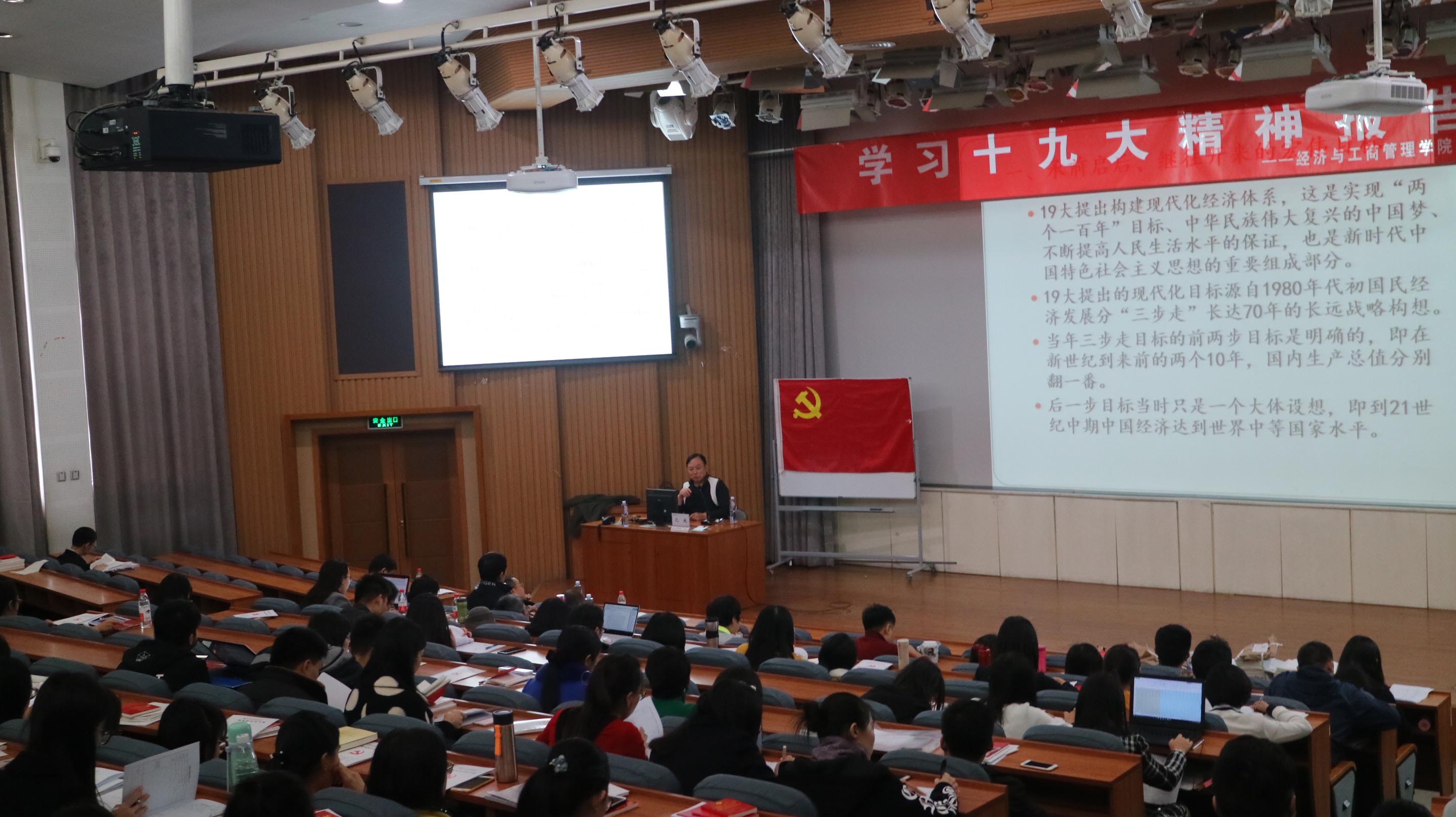 葛玉良副书记首先对在全院师生党员、入党积极分子中深入开展学习十九大精神提出要求。沈越教授从2014年党中央提出的6.5%的GDP增速开始说起,带领同学们回顾了中国实现现代化的伟大进程,向大家介绍了国家的新目标、新定位。接着,他从经济类专业的过热、农民问题、东中西部及城乡差距等方面入手,在与欧美日本进行对比的同时,结合十九大提出的重要思想,重点讲述了我国现代化经济体系的建设中需要关注的新问题以及新的发展理念。