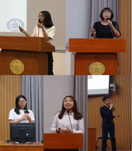 随后,论坛正式进入到论文报告部分。陈颖、何尧、陈希阳、唐娜和邱佳成五位同学分别对其论文选题及研究背景进行介绍,阐述了论文的观点、研究方法和研究意义等,还展示了相关成果。