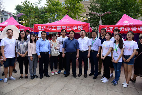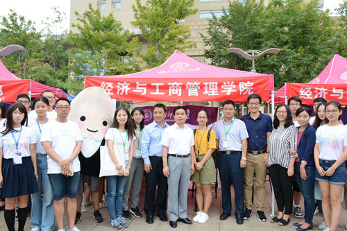 随着迎新工作的进行,学校领导、学院老师也都到达迎新点,一起迎接啪啪啦 、经管学院的新鲜血液。