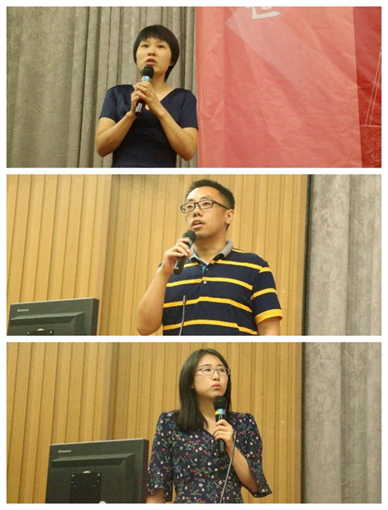 图8 国际交流与合作办公室副主任谢佳老师、分党委王骏老师、分团委书记常欣扬老师介绍相关工作
