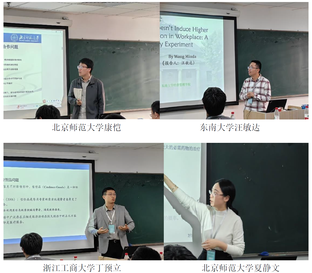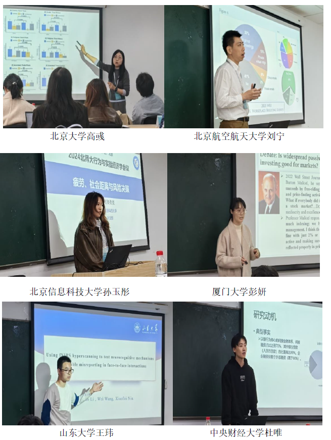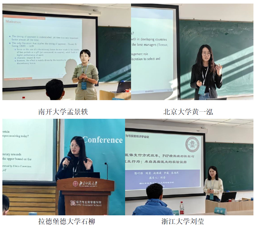 本次会议设有主会场和三个平行会场,与会者中有四十余位学者进行了学术报告。报告主题涉及人类决策模型的演变、空气污染与人机互动、女性领导力发展、信息模糊性与资产价格、信息披露规则的可观察性在贝叶斯说服情境中的作用、反应时间与隐藏的经济变量、内生性权力转移背景下的预防性战争决策、面对勒索或压迫时的行为反应、性别差异、合作与互惠等等。与会人员就演讲人展示的研究成果进行了热烈交流,深入浅出,现场讨论氛围活跃。本次会议的顺利召开将有助于加强啪啪啦 经济工商管理学院与国内外各院校的交流与合作,推动行为与实验经济学研究的进一步发展。