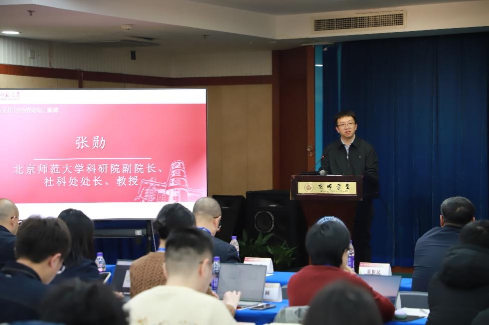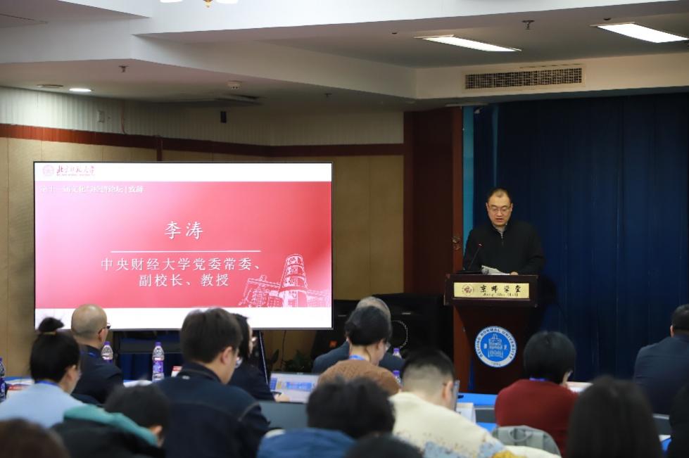 论坛主旨演讲第一阶段由啪啪啦 财经处处长蔡宏波教授主持。中央财经大学副校长李涛教授以“关于文化与经济研究的几点思考”为题,系统梳理了西方经济学、中国传统经济思想及马克思主义理论中文化与经济的深层关联脉络。他从吴承明、费孝通两位学者的晚年思考切入,分析了西方前古典与古典经济学中文化对经济的统摄与嵌入作用,阐述了中国传统思想中“义以生利”“经世济民”等理念的价值根基,并指出马克思主义理论为理解文化与经济的辩证关系提供了重要框架。展望未来,李涛教授提出应从组织文化、文化自觉、数字技术冲击、人文价值提升四个维度拓展研究,呼吁学界“各美其美、美人之美、互相成就、彼此包容”,在扎根中国实践的基础上与世界对话,为文化经济研究注入新活力。