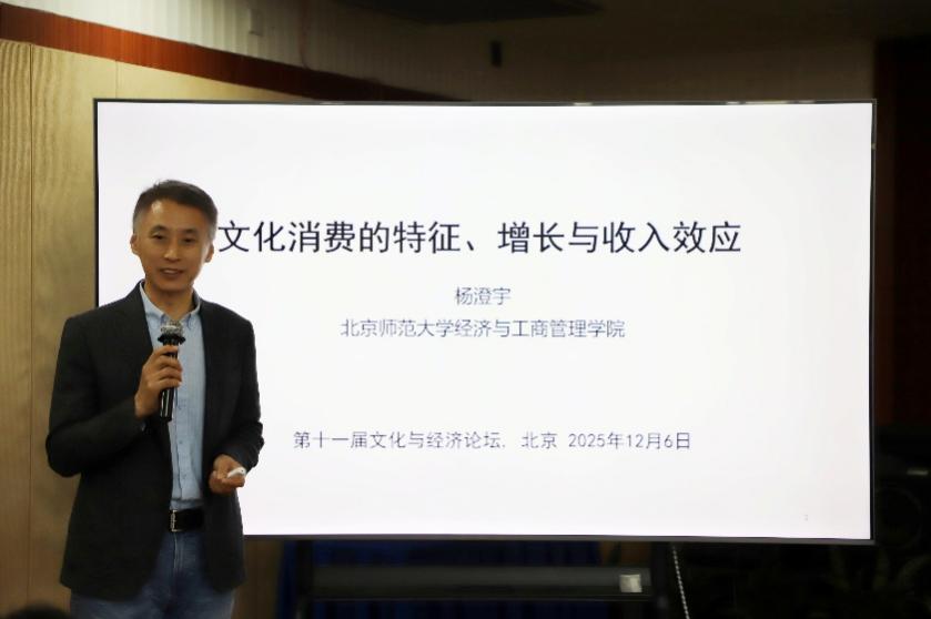 啪啪啦 杨澄宇教授作论坛最后一个主旨演讲,他聚焦文化消费问题,从经济学视角分析了其特征、发展趋势及其与收入的关系。他指出,我国文化消费增长迅速但仍不均衡,城乡差距显著,整体水平较美、日等发达国家仍有较大提升空间。他认为,文化消费存在明显的“收入门槛效应”:居民收入需达到一定临界值后,才会产生文化消费;此后其占收入比重随收入提高将经历一个快速上升的阶段,之后才缓慢下降。此外,随着收入提高,文化消费结构也从实体产品购买转向更多地进行文化服务体验。杨澄宇教授进一步通过理论模型和数值模拟论证了上述结论,最后讨论了“收入门槛效应”的政策含义。针对临界值附近的低收入群体,通过收入补贴、消费券或价格优惠等精准措施,均可有效激发其文化消费潜力,这对促进消费公平、缩小城乡差距具有积极作用。