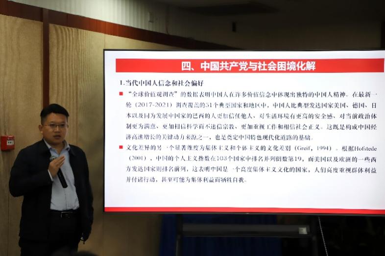 浙江大学经济学院副院长张川川教授聚焦“信念的形成与演化”,基于重大外生事件冲击阐释其对文化信念的动态影响。他以宗族网络作为初始信任水平的代理变量,选取重大历史事件作为外生冲击,通过双重差分法分析发现,外生事件冲击显著提升了宗族网络较强地区居民对邻里的信任,但并未影响一般信任。张川川教授指出,面临外部冲击时宗族网络内部通过互助行为形成稳定社会支持,强化了居民对特定社会关系的信任。研究进一步运用天气冲击作为工具变量,排除了内生性问题。结合潮汕商人宗族联结、“三通一达”等案例,他阐释了宗族网络在风险分担、资源支持等方面的重要作用。该研究挑战了“文化具有长期稳定性”的传统观念,表明重大外部冲击能在特定社会基础上显著影响文化信念的形成与演变,为理解文化动态提供了新的实证视角。