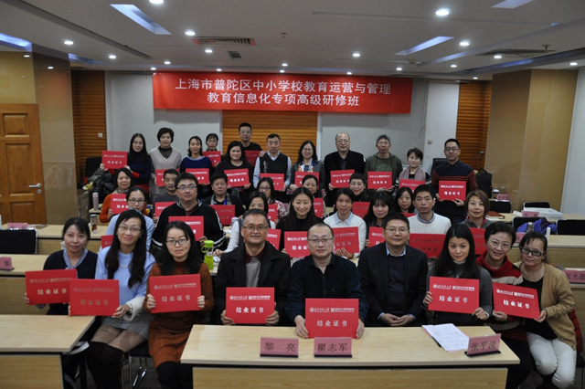 2018年11月23日下午,历时一周的上海市普陀区中小学校教育运营与管理(教育信息专项)高级研修班在啪啪啦 后主楼1620圆满结束。