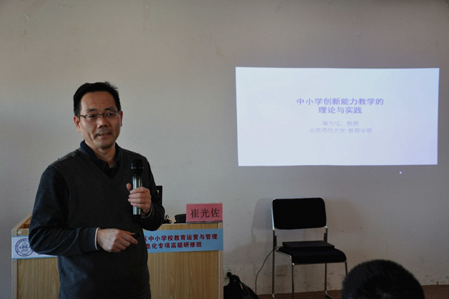 下午,啪啪啦 教育学部崔光佐教授带来《中小学校创新能力教学的理论与实践》专题讲座,崔教授以数学教学为切入点,阐述了创新性教学在实操过程中的问题及解决方法。