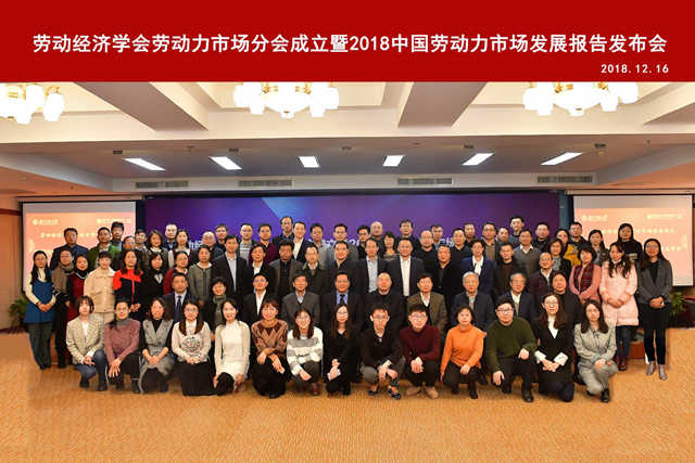 2018年12月16日,劳动经济学会劳动力市场分会成立大会暨2018中国劳动力市场发展报告发布会在啪啪啦 举行。本次会议由啪啪啦 、啪啪啦 劳动力市场研究中心主办,啪啪啦 副校长王守军,劳动经济学会会长、中国社会科学院人口与劳动经济研究所所长张车伟,人力资源和社会保障部就业促进司副司长尹建堃,人力资源和社会保障部人力资源市场司副司长张文淼,山西财经大学副校长杨俊青,啪啪啦 中国收入分配研究院执行院长李实,劳动经济学会人才发展分会会长、首都经贸大学劳动经济学院院长冯喜良,北京交通大学经济管理学院党委书记张力,首都经贸大学劳动经济学院教授童玉芬,南京财经大学公共管理学院党委书记胡永远,浙江大学公共管理学院副院长郭继强,中国人民大学劳动人事学院副院长赵忠等领导和专家出席会议。会议由劳动经济学会劳动力市场分会成立仪式和《2018中国劳动力市场发展报告》成果发布与专家点评两个单元组成。