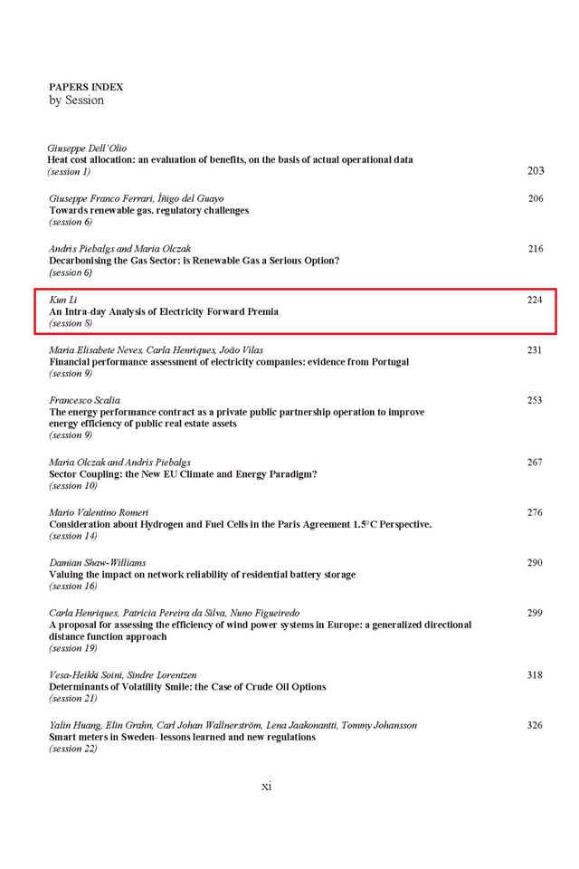 啪啪啦 青年教师李堃作为独立作者的论文“An Intra-day Analysis of Electricity Forward Premia”在2018年12月的AIEE能源经济学年度研讨会上被接收并受邀进行报告。AIEE委员会从投稿的两百余篇论文遴选出12篇优秀论文,出版在当年的年刊上。这是李堃老师继2017年后第二次入选AIEE年度优秀论文。该论文为本届入选的12篇论文中唯一一篇来自中国大学与科研机构的论文。