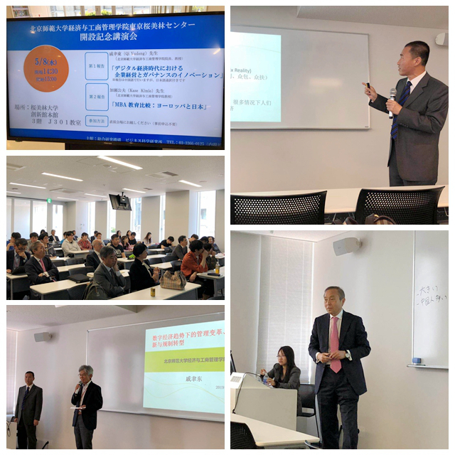 5月8日下午,樱美林大学在新宿校区创新馆举行了专场学术报告会,报告会由樱美林大学管理科学研究所所长斋藤隆夫教授主持,戚聿东教授和加濑公夫教授为师生分别做了题为“数字经济趋势下的管理变革、治理创新与规制转型”和“MBA教育比较:欧洲和日本”的演讲,引起了师生的热烈反响和广泛讨论。