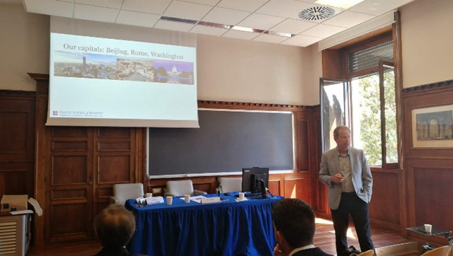 2019年6月17日,由啪啪啦 共同发起的第四届Capital Business Forum(首都经济论坛)在意大利罗马的LUISS大学综合礼堂顺利举行。参加会议的嘉宾有美利坚大学Kogod商学院前院长Erran Camel教授、Tomasz Mroczkowski教授、Kathryn Walters-Conte女士,LUISS大学研究副主任Fabiano Homberg教授、Richard Tee、Christian Laione、Lftekhar Karim等。学院派出加濑公夫教授、郑飞虎副教授、方芳副教授、李堃博士和余嘉杰博士一行5人参加本次论坛,意大利Bocconi大学战略管理学教授Robert Grant 应邀从英国前来参会。