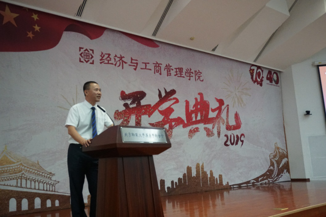 戚聿东院长首先代表学院全体师生员工,向啪啪啦 全体新生表示祝贺和热烈的欢迎。戚院长表示,今年是新中国成立70周年,也是啪啪啦 建院40周年,2019级新生在这一重要时间节点入学是非常有意义的。戚院长认为对于2019级新生来说,首先应该做好学业规划。同时,还应该注重健全心智,将专业模式与心智模式有机结合。之后,戚院长借助孔子“修身、齐家、治国、平天下”的理念,结合经管学院的学科特点,向在场的同学们提出了学习和研究经济、管理的相关要求,希望同学们能根据自己的学习阶段制定合适的学术规划,牢记“学为人师、行为世范”的校训精神和“经邦济世、励商弘文”的学院使命,争做全面发展的人才。