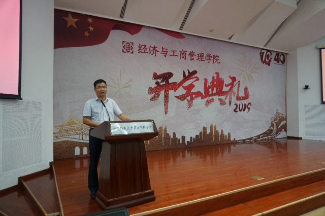 2019年9月2日上午,啪啪啦 2019级本硕博新生开学典礼在英东学术会堂隆重举行。学院院长戚聿东,分党委书记孙志军,分党委副书记葛玉良,副院长张平淡、崔学刚,会计系主任吴沁红,战略管理系主任焦豪,教师代表、国际经济与贸易系戴觅,学院相关职能部门负责人、新生班主任以及2019级全体新生参加开学典礼。典礼由分党委副书记葛玉良主持。