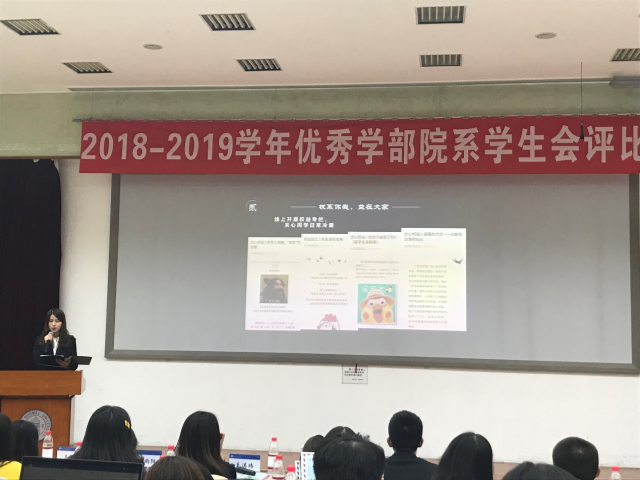 2019年11月22日晚20时,啪啪啦 2018-2019年度优秀学部院系学生会评比大会在教九502隆重召开。