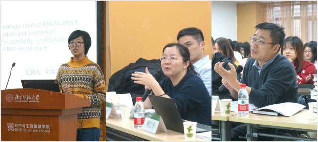 刘晨蕊同学汇报的题目为“How can digital technology-related M&As affect firm’s innovation performance? The role of innovation capability, CEO duality and acquisition experience”。童璐琼老师肯定了此研究所用方法的科学性,同时建议在变量的选择上可以更加谨慎。焦豪老师认为在以后的研究中可以探究数字化并购的独特路径,探究其内在机制。