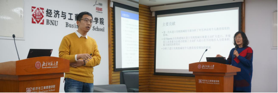 李震同学报告题目为“主动扩大进口能否避免“中等教育陷阱”—来自中国加入WTO的微观证据”。杨娟老师对这篇论文给予了较高的评价,并提供了很多改进建议,指出了论文中一些用词和说法上的错误。