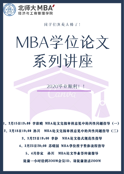 虽然这个毕业季受到疫情影响,但我们对高品质论文的追求没有改变。学院各位老师和MBA中心为了帮助大家顺利完成毕业论文,克服众多困难和不便,努力做到停课不停教、停课不停研。希望各位同学积极修改并最终出色地完成毕业论文,顺利毕业。更期盼同学们能在毕业季归来,姗姗不迟!