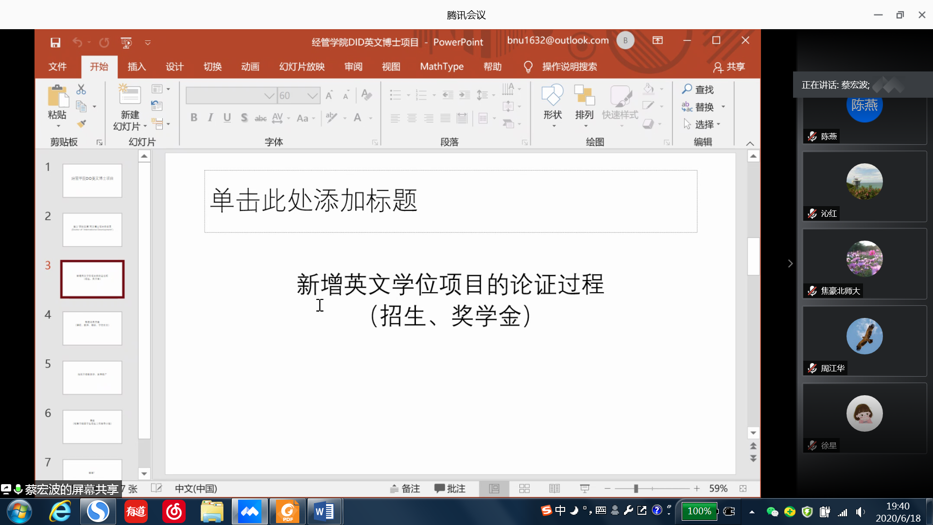 2020年6月18日晚上,经管学院组织召开了工商管理英文博士项目专题讨论会,学院副院长张平淡、蔡宏波,会计系主任吴沁红、人力资源系主任陈燕、企业管理系主任焦豪、郝颖、童璐琼、周江华、许志星、徐星等老师通过线上的方式参与了本次专题讨论会。