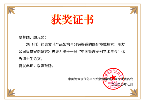 获奖论文证书