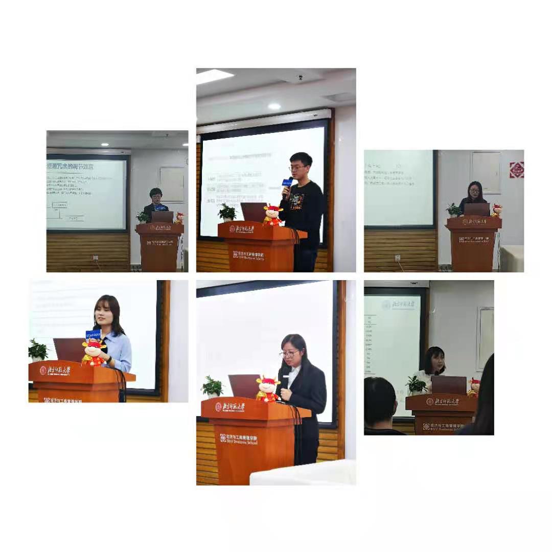 管理论坛专家组由李海教授(组长)、周江华副教授、杨丹副教授、童璐琼副教授、钱婧副教授组成,周江华副教授担任主持人。由6名同学做汇报展示。