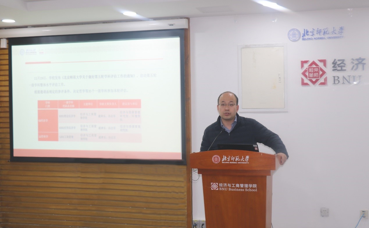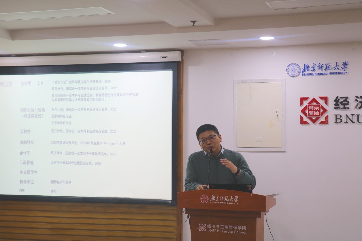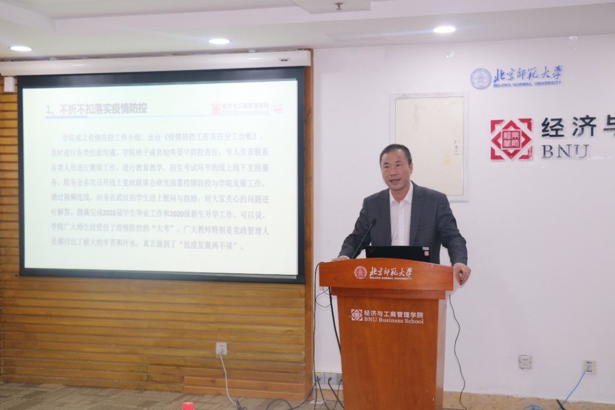 蔡宏波副院长就学院学科建设、科研、国际化、珠海校区和博士后工作做了汇报。学科建设方面,积极部署、完成第五轮学科评估工作,优化学科建设经费的预算规划与管理,顺利完成学院“十三五”总结与“十四五”规划草案。科研方面,学院教师在国家级和省部级项目、国际合作项目等方面取得显著成绩,国家级、教育部和北京市级科研获奖创历史新高,在国际学术顶刊发表论文持续突破;主办高水平学术会议6次,举办京师经管名家讲坛累计超过100期。国际交流与合作方面,开发留学生线上管理平台,与海外高校合作在线课程、在线系列讲座,获批学校国际经济组织合作建设平台,在2020年北师大发布的各学部院系国际竞争力监测指标及其分析报告中,经管学院国际化水平处于第一梯队。珠海校区方面,推进3个专业学位硕士项目建设,完成国际商务硕士水平评估工作,同时配合经济学、金融社科实验班和会计第二学位的教学和专业建设。博士后工作方面,修订完成博士后进站和出站标准,进一步规范和提升博士后培养水平。