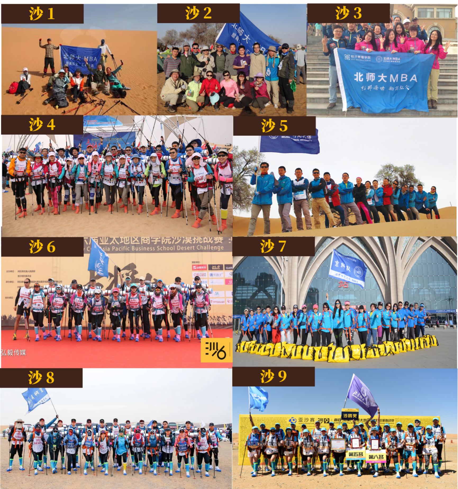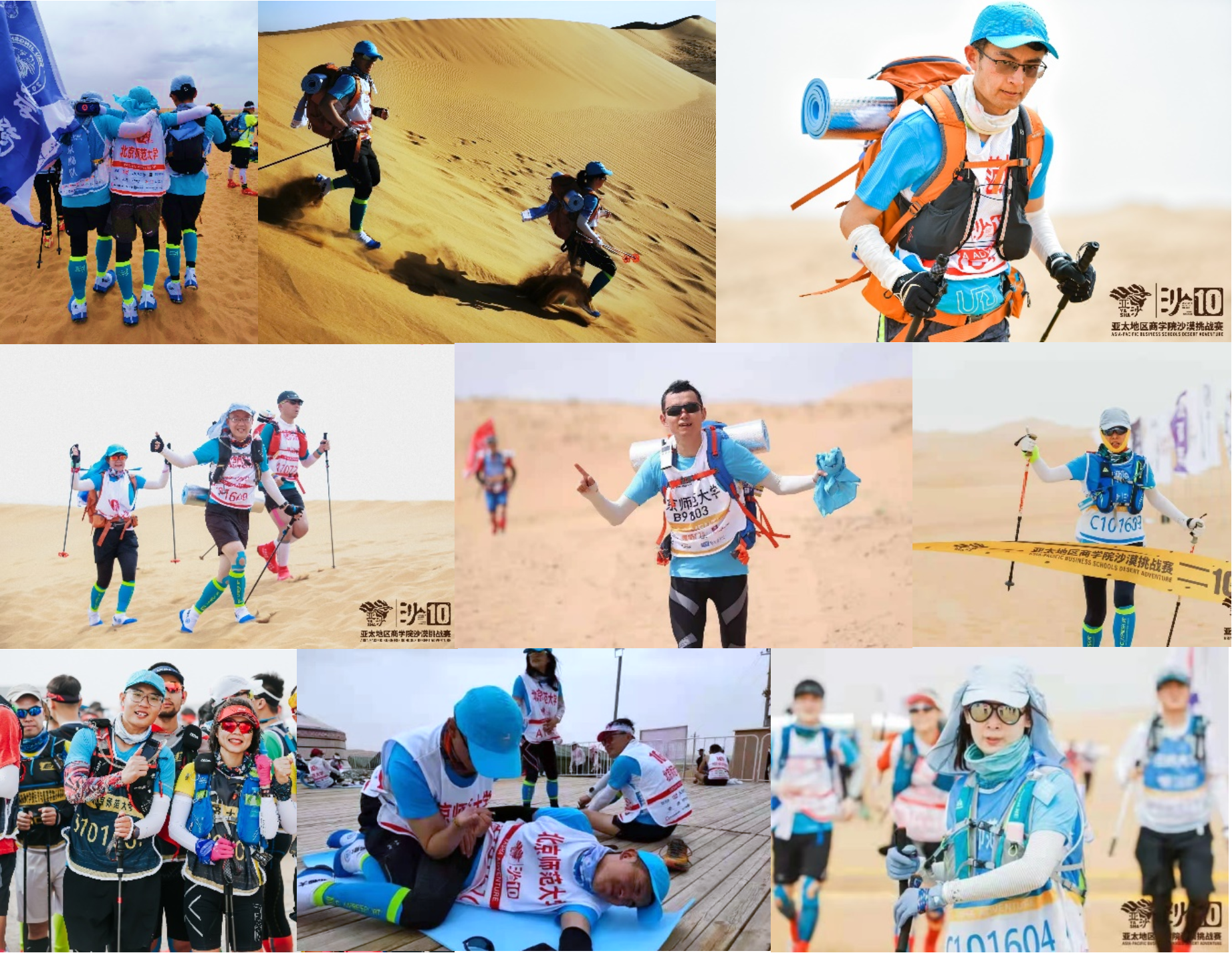 2021年5月4日,第十届亚太地区商学院沙漠挑战赛(以下简称“沙十”)在内蒙古阿拉善盟腾格里沙漠正式落幕。全赛程共计三天两夜,里程70公里,亚太地区120所商学院(队伍)、3600余名参赛者参与其中,群雄逐鹿,刷新了亚沙赛“全球最大规模的沙漠徒步挑战赛(Largest Desert Hiking Challenge)”世界纪录。最终,北师大MBA京狮队全体队员全员完赛,勇夺“金沙鸥”最高荣誉。同时,荣获团体23名、超A百公里组第31名(秦真朋)、男子A组个人29名(李青峰)、女子A组个人前百(李冬梅)的好成绩。