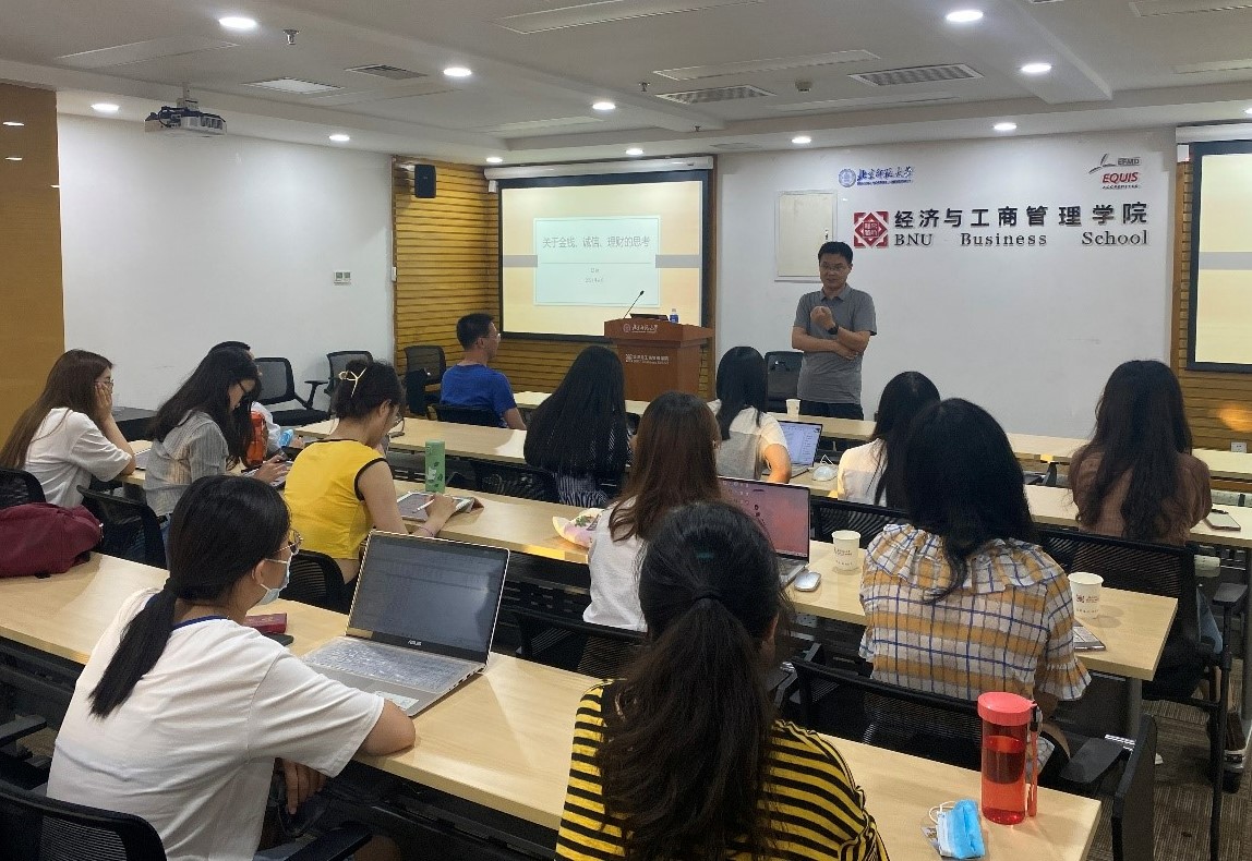6月10日晚,学院诚信教育专题讲座暨校友讲坛第21讲在京师大厦9406会议室举行,此次讲座主题为《关于金钱、诚信、理财的思考》,邀请到北京银行江铨学长与大家分享如何认识货币与金钱、借贷与信用、理财与杠杆。学院分党委副书记、校友会常务副会长葛玉良老师,分党委韩丽丽老师,校友工作主管李阿妮老师参加了讲座。
