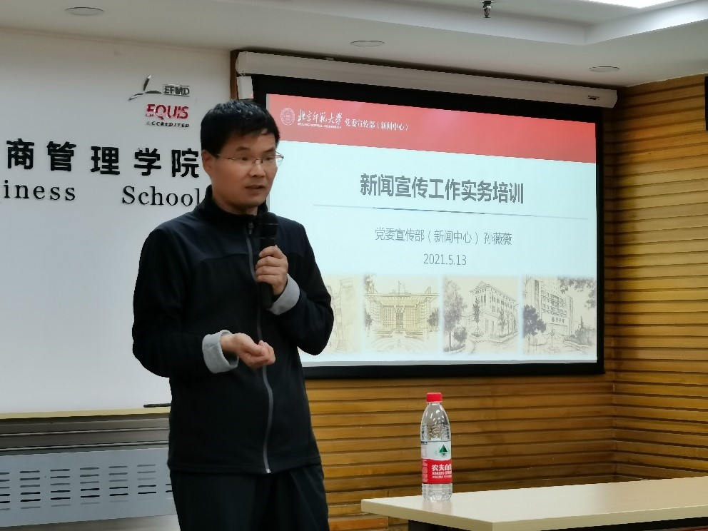 新闻宣传是学院建设和发展是一项关键工作,发挥着宣传引导、展示形象、凝心聚力的重要作用。为帮助全体行政教师对新闻媒体的属性、功能、传播形成系统认知,提升新闻宣传工作的能力和技巧,5月13日下午,学院在京师大厦9406会议室举办了新闻宣传工作实务培训讲座,由党委宣传部副部长兼新闻中心副主任孙薇薇老师主讲。孙老师结合自身负责学校对外宣传、网络新媒体平台建设运营相关工作的经验,首先就高校宣传思想工作定位、任务及学校主要新闻宣传平台做了介绍,随后重点讲解了新闻稿写作规范及审校注意事项,就年度重点选题方向等进行了说明,并鼓励老师们积极投稿,合力做好新闻宣传。