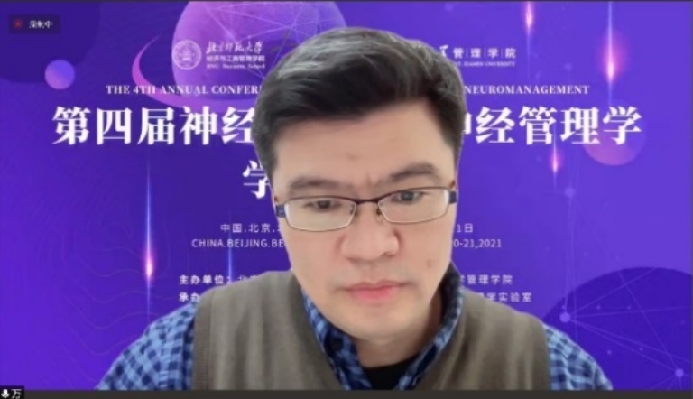 Peter Bossaerts发表了题为“What Matters More for The Brain: Risk Or Reward ?”的主题演讲。他从人工智能的最新发展出发,指出不同于算法和人工智能为追求决策效用最大化而将风险置于次要地位,对风险的心智衡量在人类决策中扮演着关键角色。经济学只假设算术层面的效用最大化,忽视人脑在决策过程中权衡收益和风险的过程与机制。目前算法和人工智能技术不能解决风险和收益的感性决策,这就需要运用脑神经技术和手段探寻大脑在风险计量与风险收益权衡中的感性决策机制,以进一步优化人工智能算法。最后Peter教授针对与会学者的提问进行了细致解答和互动交流。我国著名经济学家叶航教授做了“无创脑刺激技术在人文社会科学研究中的作用”的主题演讲,他区分了脑成像和脑刺激不同的技术特点和在研究中的不同作用,强调了脑刺激技术对于实验操控及其确定变量之间因果关系的重要功能,并分享了国内外运用脑刺激技术取得的成果和自己的研究经验。万小红教授的演讲主题为“Neural Mechanisms of Confidence and Confirmation Bias in Decision-Making”,探寻了决策过程中的自信偏见和确认偏见,展示了大脑在决策过程中的信息加工过程和神经机制,为决策纠偏提供了理论和认知基础。戴伟辉教授的演讲主题为“人机混合智能与神经管理”,梳理了大数据、人工智能和人机混合智能的理论演化和实践发展过程,介绍了人机混合智能中神经管理的基本内涵、研究方法及其作用,并展示了神经管理在疫情防控、供应链升级和社交媒体传播中的具体应用场景和应用效果。陈亚盛教授的演讲主题为“人工智能时代的人类情绪劳动”,讨论了情绪劳动的概念定义、研究意义、研究前景和研究方法,提出情绪劳动研究话题,指出情绪劳动是AI时代人的核心竞争力,也是企业需要重点管理的劳动维度。盛峰教授的演讲主题为“眼中读脑:从注视分配和瞳孔变化中识别损失厌恶”,分享了损失厌恶的行为学解释和脑科学解释,通过眼动实验和DDM模型从估值偏好和反应偏好两个维度识别出了多样的损失厌恶者,成功分离出从估值偏好和反应偏好两种效应,并建立了计量这两种效应的模型。李建标教授针对投资者非理性行为——处置效应,在梳理自我控制理论的基础上提出测试自我控制效果的脑刺激方法,并运用到自我控制与处置效应之间因果关系的研究中,探测出金融投资决策偏误的脑刺激纠偏方法及其证据。唐红红老师探讨了第三方惩罚如何促进不同意见的人们达成共识,分享了实验方法并总结了影响人们达成共识的具体因素。崔学刚教授介绍了公司财务决策中的行为偏误现象及其对公司价值和国家系统性金融风险的影响,从大脑加工信息、信息影响信念的角度揭示了其背后产生的机理,结合已开展的研究提出公司财务决策纠偏机制与行为及制度方案。精彩纷呈的主题演讲得到与会代表的高度评价,纷纷表示收获颇丰,研究视野大为开拓。